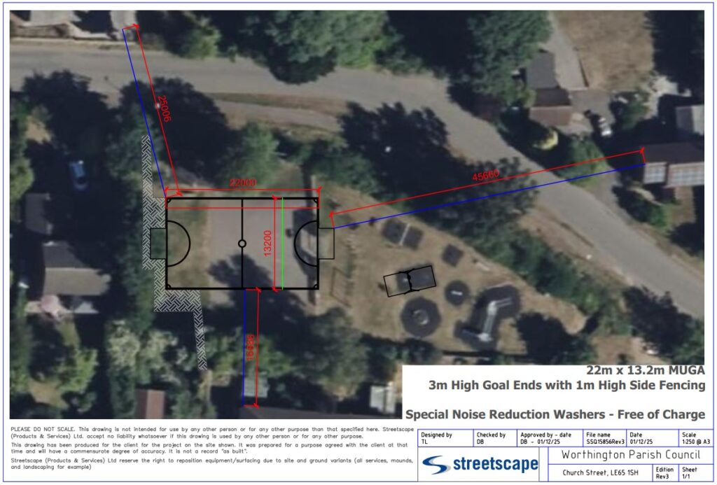 Following earlier updates shared via Facebook , Worthington Parish Council is consulting residents on proposals to improve the Church Street play area, including the installation of a Multi-Use Games Area (MUGA) for older children and teenagers. The proposals aim to provide inclusive recreational facilities, improve safety, and address ongoing issues of vandalism and anti-social behaviour, while retaining the existing play equipment for younger children.